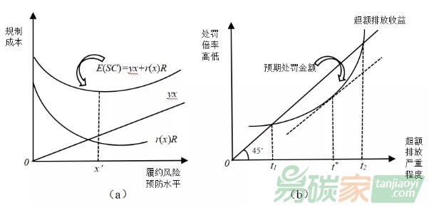 圖1 碳排放權(quán)交易最優(yōu)處罰規(guī)則設(shè)計的法律經(jīng)濟分析