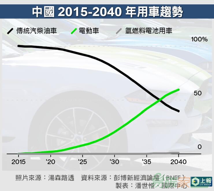 問(wèn)題,但中國(guó)早已是電動(dòng)車(chē)龍頭,中國(guó)電動(dòng)用車(chē)占比將在2035年左右超過(guò)汽柴油內(nèi)燃機(jī)用車(chē)。