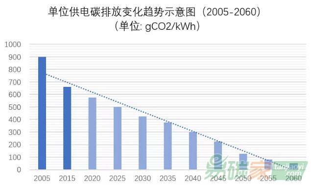 中國如果在2060年實現(xiàn)碳中和目標(biāo),電力行業(yè)單位供電碳排放要從目前的600克左右,至少以每10年平均100克左右(即每年10克左右)的速度往下降,才能確保2060年左右達到目前近零排放國家的水平(如瑞典、法國等)。
