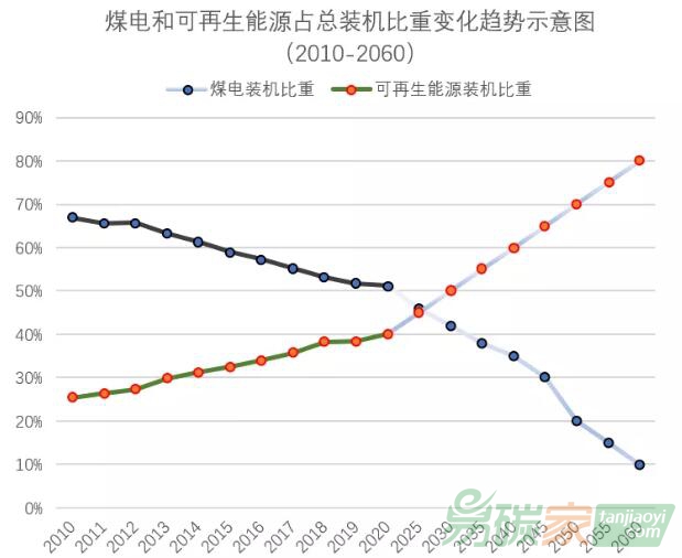 節(jié)能力),煤電退出后的空間逐步讓位給可再生能源發(fā)電,使得2060年可再生能源發(fā)電裝機比重至少達到80%以上,才可能實現(xiàn)電力的真正低碳化甚至零碳化,確保2060年碳中和目標(biāo)的實現(xiàn)。