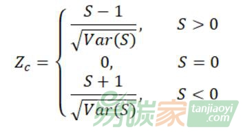 Mann-Kendall趨勢分析檢驗(yàn)法,其統(tǒng)計(jì)量S的計(jì)算公式如下: