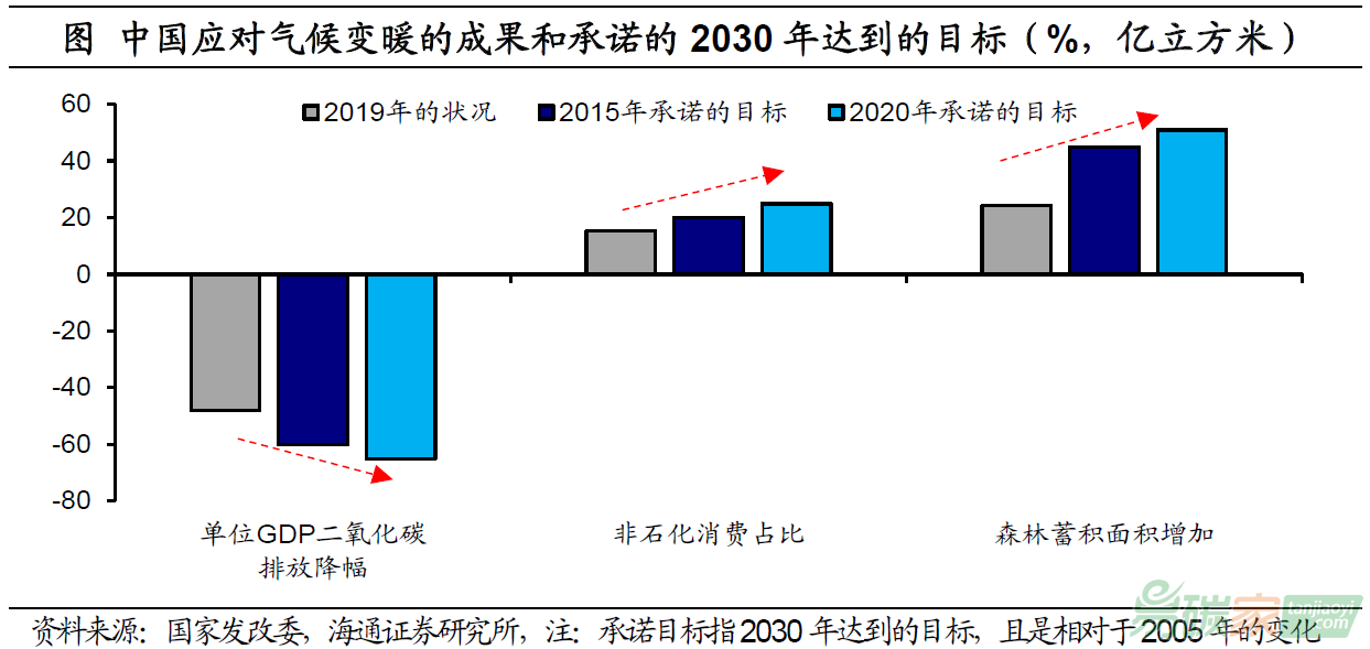 碳匯方面,2019年我國森林蓄積量達(dá)到175.6億立方米,較2005年增加24.2億立方米,均已提前實(shí)現(xiàn)2020年的目標(biāo)。