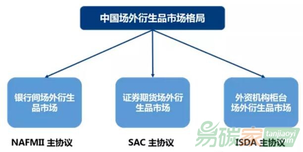 國(guó)內(nèi)場(chǎng)外衍生品市場(chǎng)經(jīng)過十幾年的發(fā)展,已經(jīng)形成了一定規(guī)模和影響力,與場(chǎng)內(nèi)市場(chǎng)形成互補(bǔ),在滿足投資者風(fēng)險(xiǎn)管理、財(cái)富管理、豐富市場(chǎng)寬度和深度方面發(fā)揮了重要作用。與國(guó)外自下而上的發(fā)展模式不同,國(guó)內(nèi)場(chǎng)外衍生品市場(chǎng)的發(fā)展是由監(jiān)管機(jī)構(gòu)自上而下進(jìn)行主導(dǎo)。不同監(jiān)管體系下的子市場(chǎng)相互獨(dú)立發(fā)展且采用不同的主協(xié)議體系,因此形成了 NAFMII 體系下的銀行間場(chǎng)外衍生品市場(chǎng)、SAC體系下的證 券期貨場(chǎng)外衍生品市場(chǎng)以及 ISDA體系下的外資機(jī)構(gòu)柜臺(tái)市場(chǎng)三大市 場(chǎng)體系三足鼎立的市場(chǎng)格局。由于每個(gè)子市場(chǎng)由不同的監(jiān)管機(jī)構(gòu)主導(dǎo),因此在監(jiān)管標(biāo)準(zhǔn)、產(chǎn)品種類、組織形式、主要參與機(jī)構(gòu)以及投資者門檻等方面并不統(tǒng)一,市場(chǎng)碎片化的