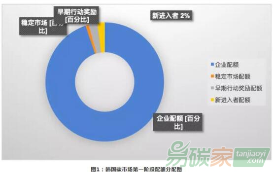 在第一階段,大多數(shù)企業(yè)依照2011-2013年數(shù)據(jù)根據(jù)歷史平均法收到政府發(fā)放的免費(fèi)配額;而對(duì)于水泥、煉油、航空業(yè),政府按照基準(zhǔn)法免費(fèi)發(fā)放配額。另外,政府預(yù)留了8900萬(wàn)噸配額,其中1400萬(wàn)噸用于穩(wěn)定市場(chǎng)價(jià)格,4100萬(wàn)噸用于早期行動(dòng)獎(jiǎng)勵(lì),3300萬(wàn)噸作為新加入者儲(chǔ)備,各配額分配比例見(jiàn)圖1。