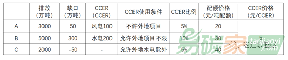 3. 某企業(yè)為一集團公司,其總排放為1億噸,分別分布在A、B、C三個試點地區(qū),而且該公司有一些CCER項目。ABC三個地區(qū)的碳市場情況如下,問:該公司為了達成履約的最佳交易策略及最終的盈虧情況。(20分)