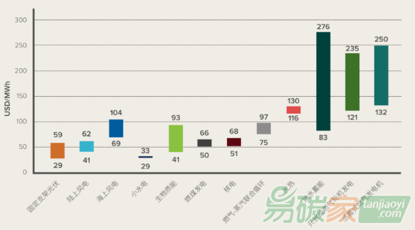 圖1 2020年中國不同發(fā)電來源的平準化度電成本