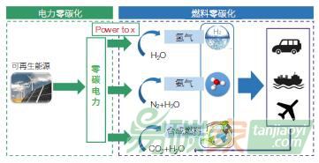 燃料零碳化是以太陽能、風(fēng)能等可再生能源為主要能量制取可再生燃料,包括氫、氨和合成燃料等。基于零碳