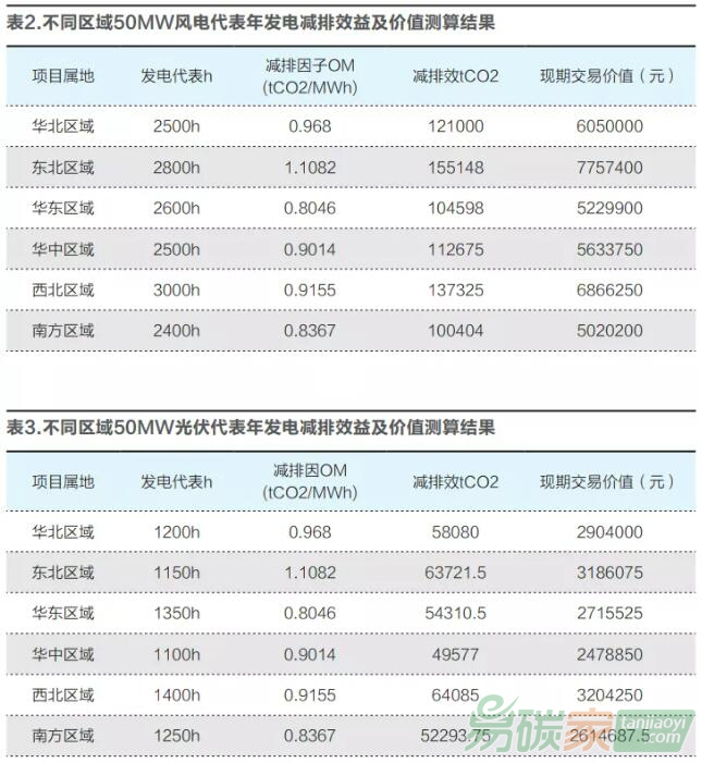 以電場發(fā)電量為基數(shù),取電量邊際排放因子的加權(quán)平均值0M計(jì)算,以下是不同區(qū)域50MW的風(fēng)電項(xiàng)目的代表年份發(fā)電情況的