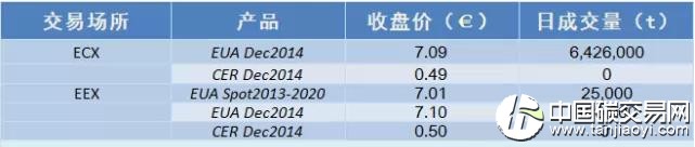 【國際碳市場交易行情走勢數(shù)據(jù)】(2014-1-2)
