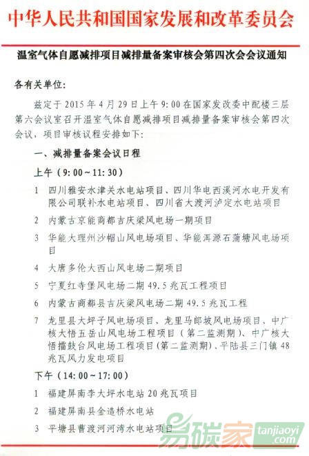 國家發(fā)改委關(guān)于溫室氣體自愿減排項(xiàng)目減排量備案審核會(huì)第四次會(huì)議通知