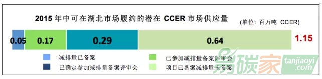 根據(jù)最新的規(guī)則,今年6月底前可在湖北履約的CCER總量也大概只有115萬噸(如圖4所示)。而且湖北試點的履約截止時間是今年五月底,這將使得供應(yīng)狀況更加吃緊。在這一履約期內(nèi),湖北控排企業(yè)可能需要更多依賴于湖北的配額來完成履約了。