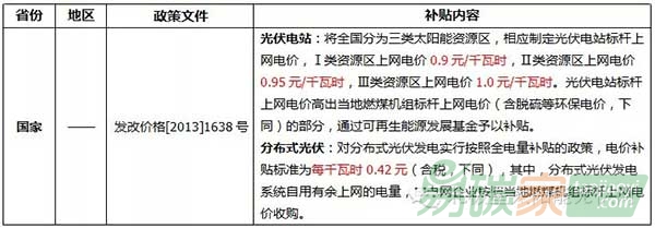2013年8月,國家發(fā)改委發(fā)布《關于發(fā)揮價格杠桿作用促進光伏產(chǎn)業(yè)健康發(fā)展的通知》(發(fā)改價格[2013]1638號),明確分布式光伏發(fā)電項目的補貼標準為0.42元/千瓦(含稅)。