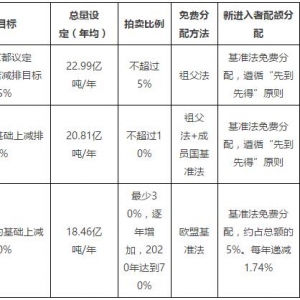 在第一階段和第二階段,歐盟采用“自下而上”的分配方式,歐盟委員會(huì)根據(jù)“總量控制、負(fù)擔(dān)均分”的原則,依照歐盟整體的減排目標(biāo)和各成員國的減排承諾,在歐盟內(nèi)部協(xié)調(diào)確定了各個(gè)成員國分擔(dān)的減排義務(wù)。每一個(gè)歐盟成 ...