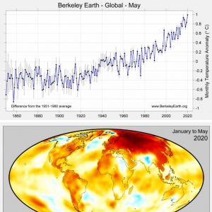美國非營利組織Berkeley Earth對2020年5月全球氣溫狀況的檢測分析表明,2020年5月是自1850年有記錄以來最熱的5月。2020年5月全球平均氣溫比1951年至1980年平均氣溫高0.99(±0.08)℃,相當于比1850至1900年的平均氣 ... ...